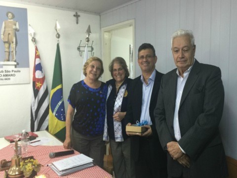 Ao fim da 17ª reunião ordinária, a presidente Maria Sofia Correia ofertou ao palestrante uma flâmula do RCSP Santo Amaro, um livro e uma revista comemorativa dos 60 anos do clube. Convidado do companheiro Antônio Miguel ? presidente eleito para o ano rotário 2016-2017 ?, o coronel Djalma gentilmente retribuiu ao gesto, presenteando a todos com um kit da Polícia Militar, contendo apoio de mesa e pasta de couro, camiseta, caneta, chaveiro e pendrive.