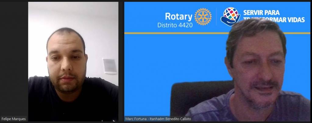 O Presidente Eleito Marc Fortuna esteve participando no sábado (22) de 6 reuniões individuais com sócios representativos do Rotary Club de Itanhaém - Benedito Calixto (Área Litoral 5 - Distrito 4420 do Rotary International), como prévia para a Assembleia Distrital que será realizada essa semana, de 26 a 29/05. "Temos hoje 29 sócios representativos (e mais 10 que em breve estarão somando nossas colunas) e todos terão efetiva e importante participação nas diversas comissões que atuarão sob o lema "Servir Para Transformar Vidas" no Ano Rotário 2021-2022 com início em 1º de julho", afirmou Fortuna.