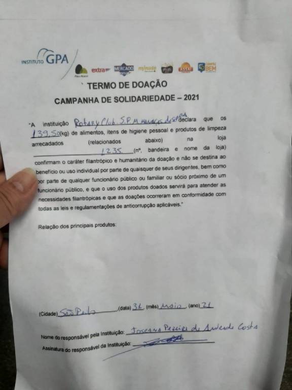 O Rotary Clube São Paulo Manancial Manacás da Serra tem arrecadado 2.500 quilos de alimentos (duas toneladas e meia de alimentos) doadas pelos clientes dos Supermercados Extra e Pão de Açúcar durante a campanha. Em parceria com entidades filantrópicas sem fins lucrativos do município de Embu Guaçu, os alimentos foram distribuídos nas Casas de Repouso “Santa Paula”, “Deus é Fiel”, “Pousada do Sol” e “Doce Lar”. Também receberam doações de alimentos as comunidades do Bairro Congonhal, do entorno da escola rural “João Gava” e da igreja Santo Inácio de Loyola.