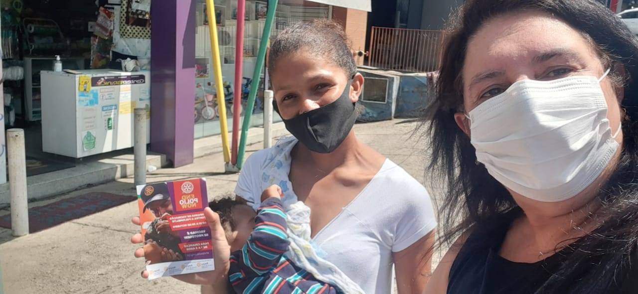 Em uma ação conjunta, os RC da Área 4 do Distrito 4420, distribuíram Folhetos Informativos da Campanha de Vacinação contra a Poliomielite, em Unidades Básicas de Saúde, Posto de Saúde, Creches e comércios.