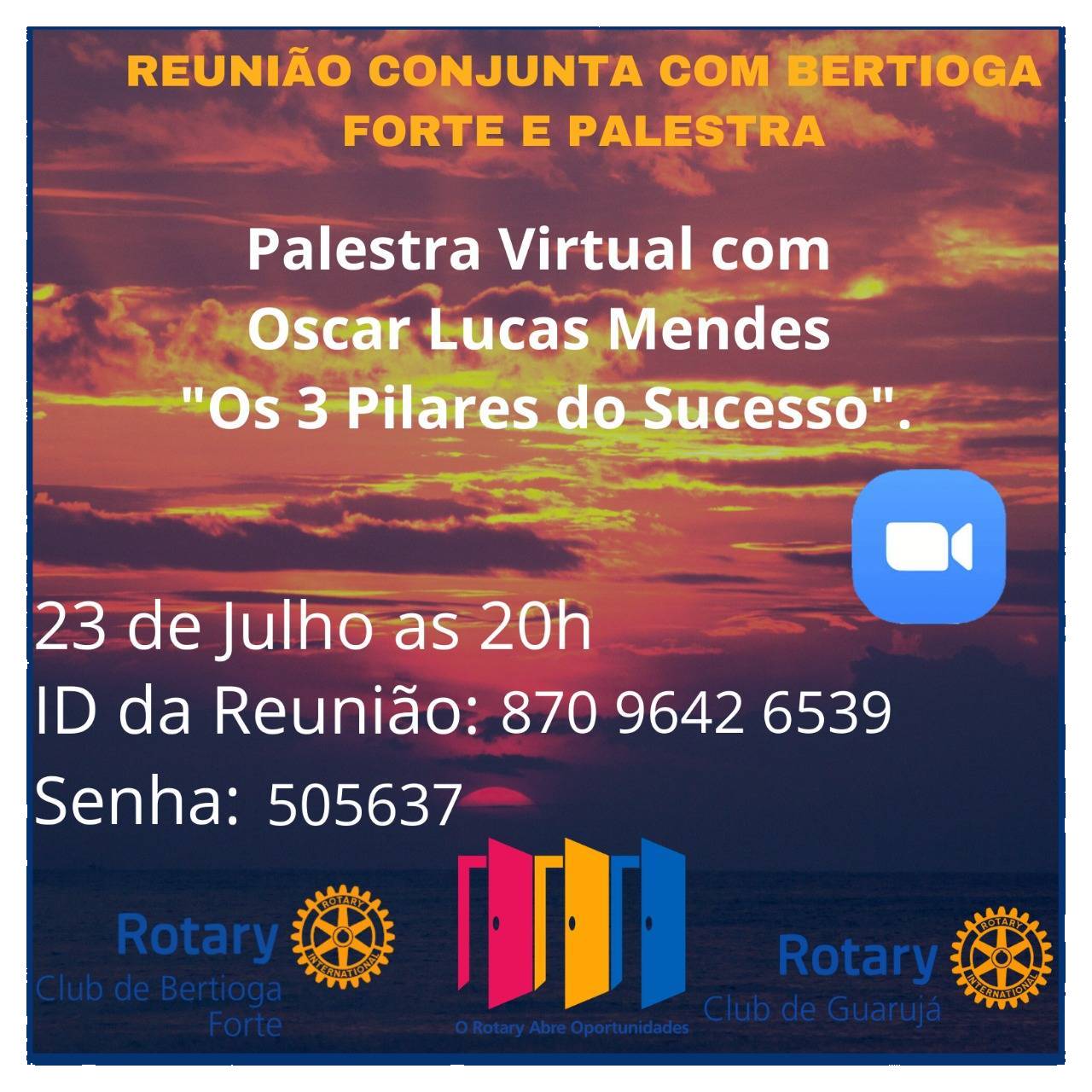 Os Rotary Club de Guarujá e Rotary Club de Bertioga Forte tem a honra de convidar para a nossa primeira reunião conjunta do Ano Rotário 2020/2021. Contamos com a presença de todos.