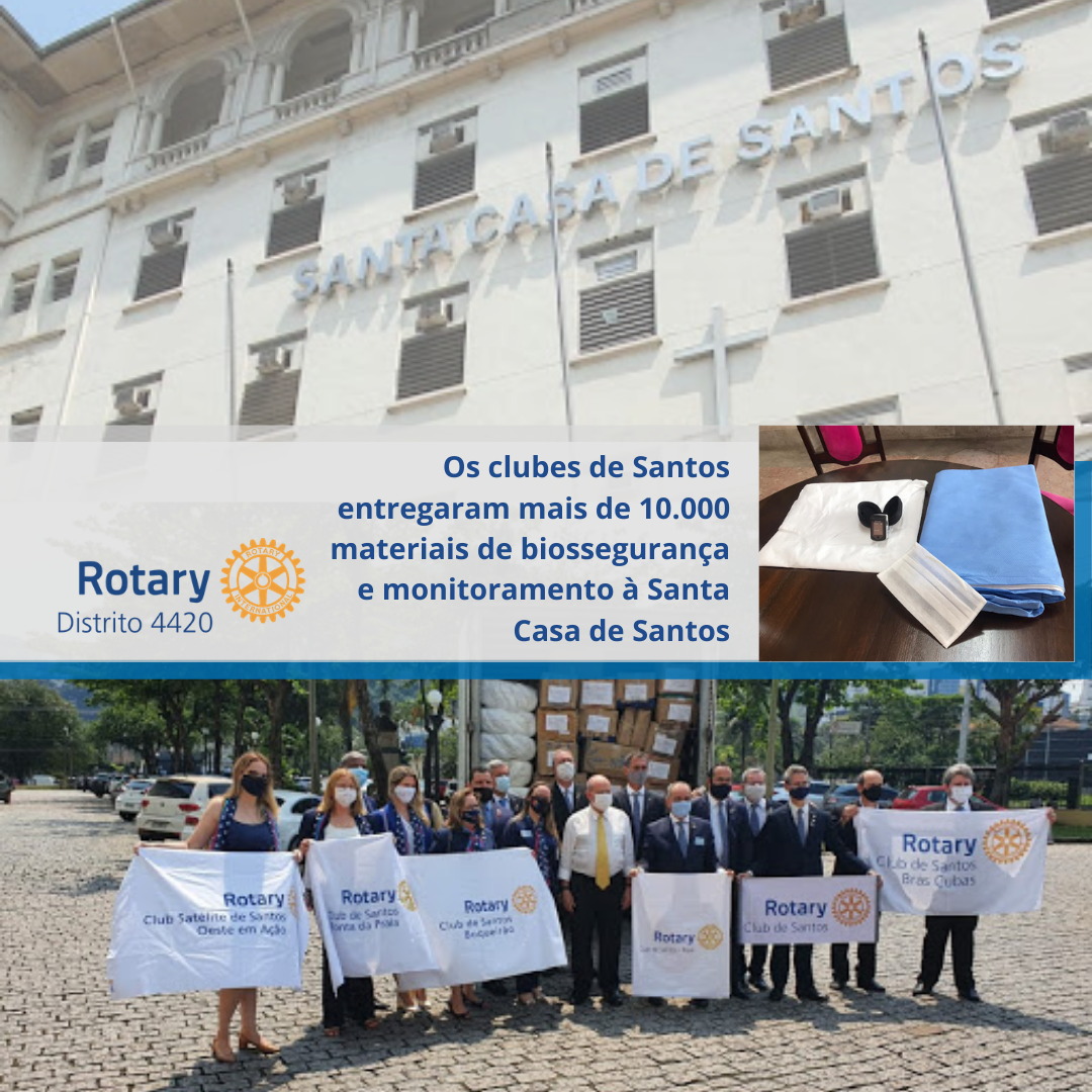 Rotary Clubs de Santos doam nesta sexta material de proteção aos profissionais da Santa Casa